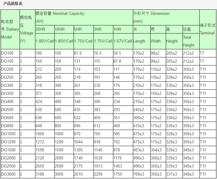 | 1. 长时间放电特性。 2. 适用于备用和储能电源使用。 3. 特殊的极板设计,循环使用寿命长。 4. 特殊的铅钙合金配方,增强了板栅的耐腐蚀性,延长了电池使用寿命。 5. 专用隔板增强了电池内部性能。 6. 热容量大,减少了热失控的风险,不易干涸,可在较恶劣的环境中使用。 7. 气体复合效率高。 8. 失水极少无电解液层化现象。 9. 贮存期较长。 10.良好的深放电恢复性能。 11.采用气相二氧化硅颗粒度小,比表面积大。 | |||||